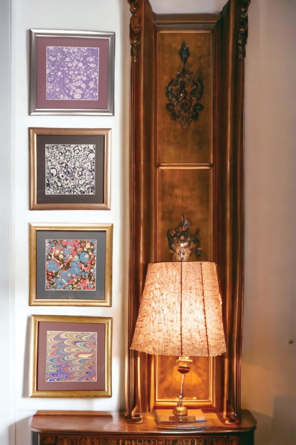 Ebruyla ilgili çağdaş eserler de yapan biriyim. Ebruyla farklı malzemeleri bir araya getiriyorum. Porselen, kumaş, ahşap, deri vs. bunların günlük kullanım alanlarına ilaveten estetik açıdan sanat değeri yüksek işler de üretmeye çalışıyorum.