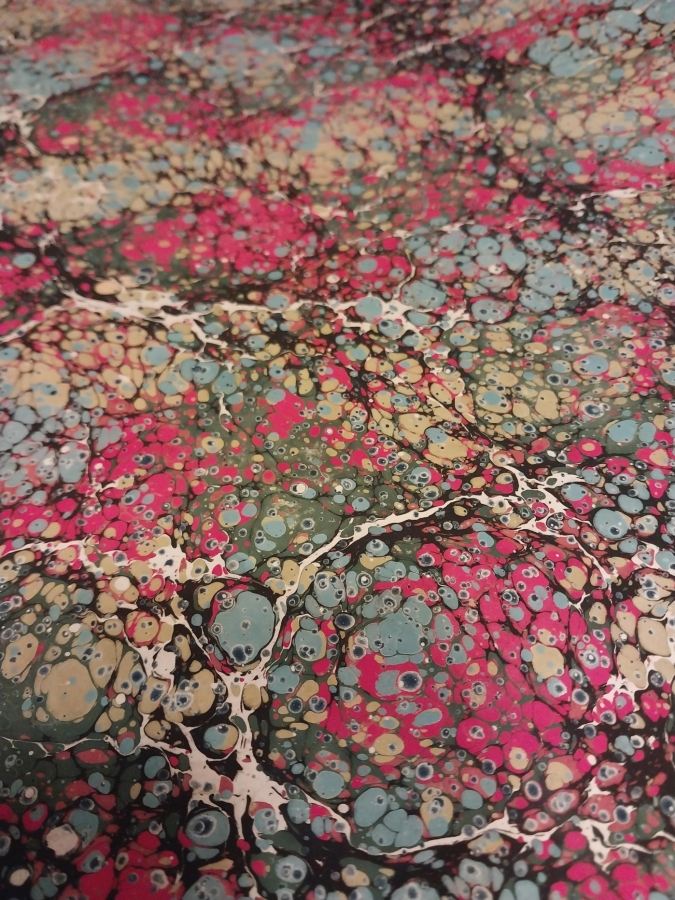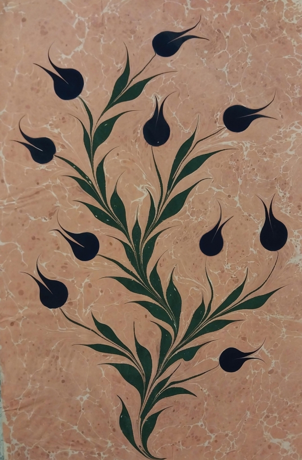 Kitrenin (üzerinde çalışılan kıvamlı su) yoğunluğunun, çıkan sonuca ya da yapacağınız çalışmaya nasıl hizmet ettiğine tanıklık ediyorsunuz. Tam olarak akışkan fiziğinin ilkeleriyle çalışmakta, attığınız boyaların birbirine karışmadan yüzeyde kendine yer açması, örneğin sarı ve kırmızı rengi attığınızda, turuncu rengin oluşmaması kimyayla açıklanabilen bir durum. Tekneye atacağınız boyanın dağılımı, fırçaya vuruş hızı vb. durumlar hep matematik ve fizikle ilişkili. Doğal olarak ebrunun estetik cazibesinin yanında, üretim sürecindeki deneyimler hem sürecin hem sonucun insanda muazzam bir tatmin duygusu yaratması, benim ebruyla vazgeçilmez bir bağ kurmamı sağladı.