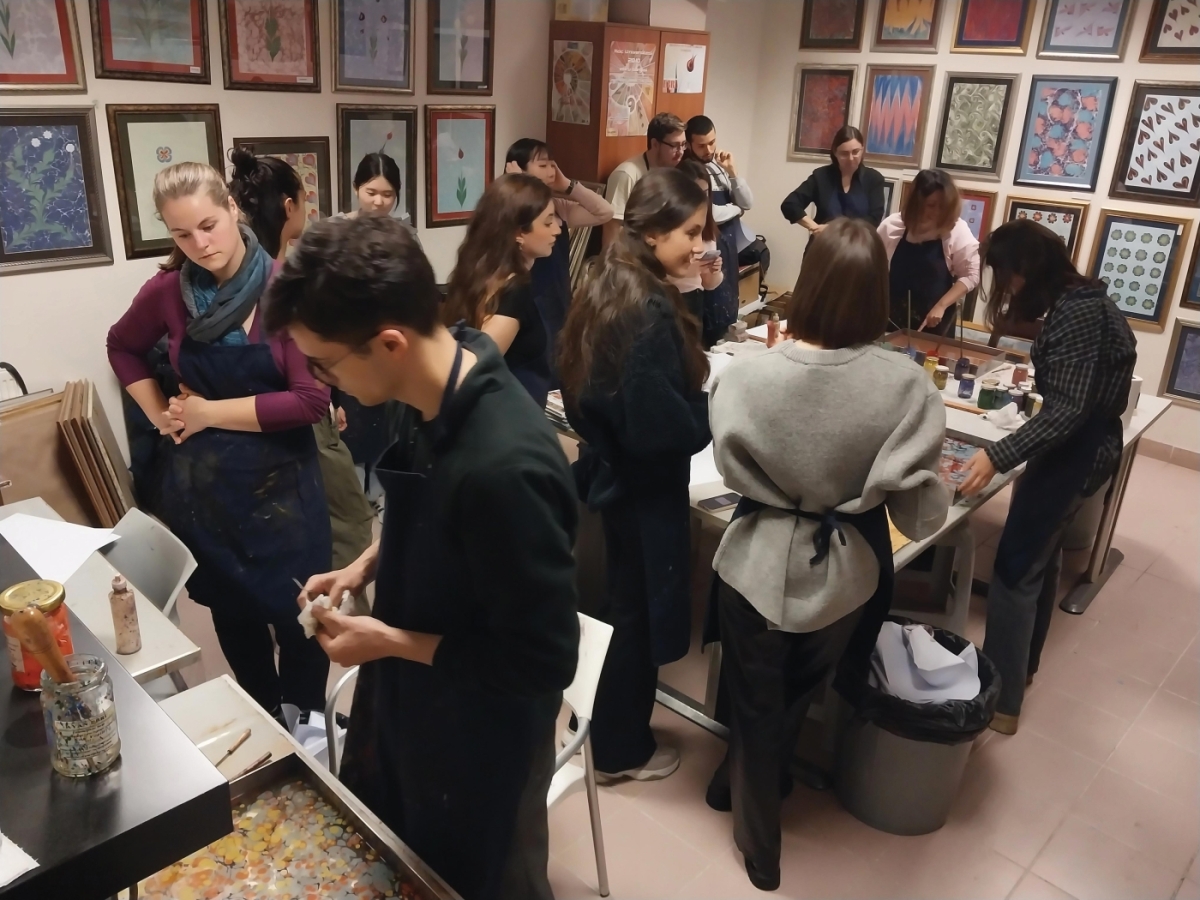 2002 yılından bu yana Koç Üniversitesinde ebru dersleri veriyorum. Bu süre zarfında Tıp, Sosyoloji, Hukuk, Tarih, Uluslararası ilişkiler, Ekonomi, Genetik, Fizik, İşletme, Mühendislik gibi çok sayıda bölümden, birçok öğrenciyle çalışma imkânım oldu. Sözel ve sayısal beyinlerin bir arada sinerji yaratabildiği, herkesin birbirini farklı konularda güncellediği harika bir ortam oluşturduk.