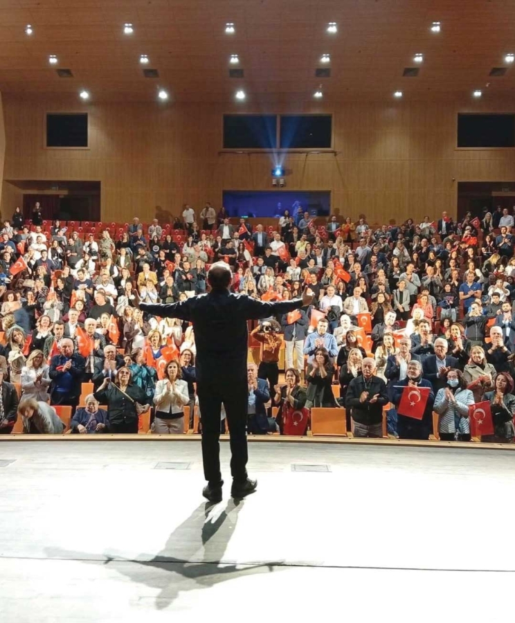 Atatürk’ü ve Cumhuriyet’in kazanımlarını tarihsel bilinç ve sanatsal bir anlatımla harmanlayarak aktaran Sunay Akın, söyleşi boyunca kendine özgü anlatımıyla dinleyicilere hem duygusal hem de düşündürücü anlar yaşatırken büyük alkış aldı.